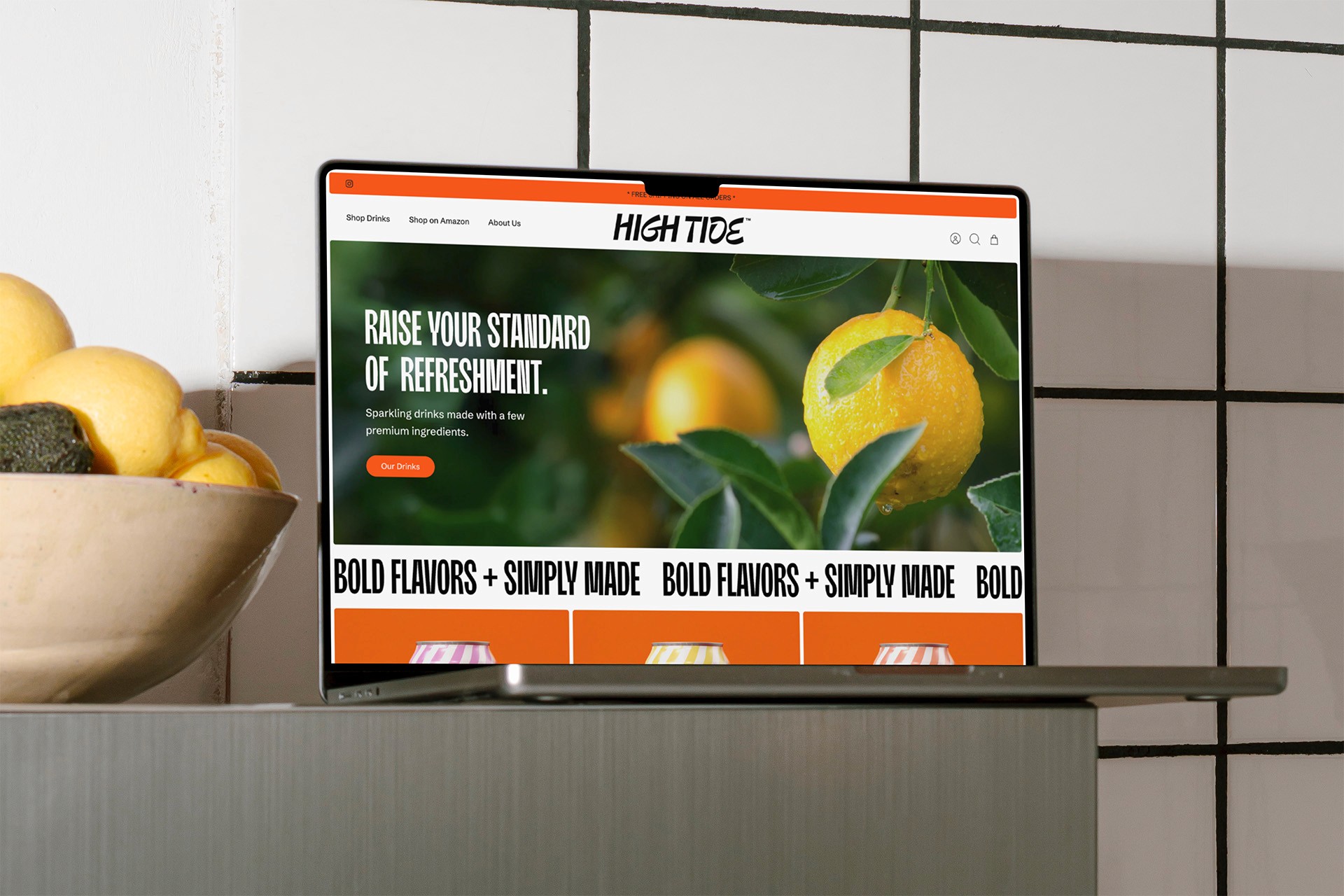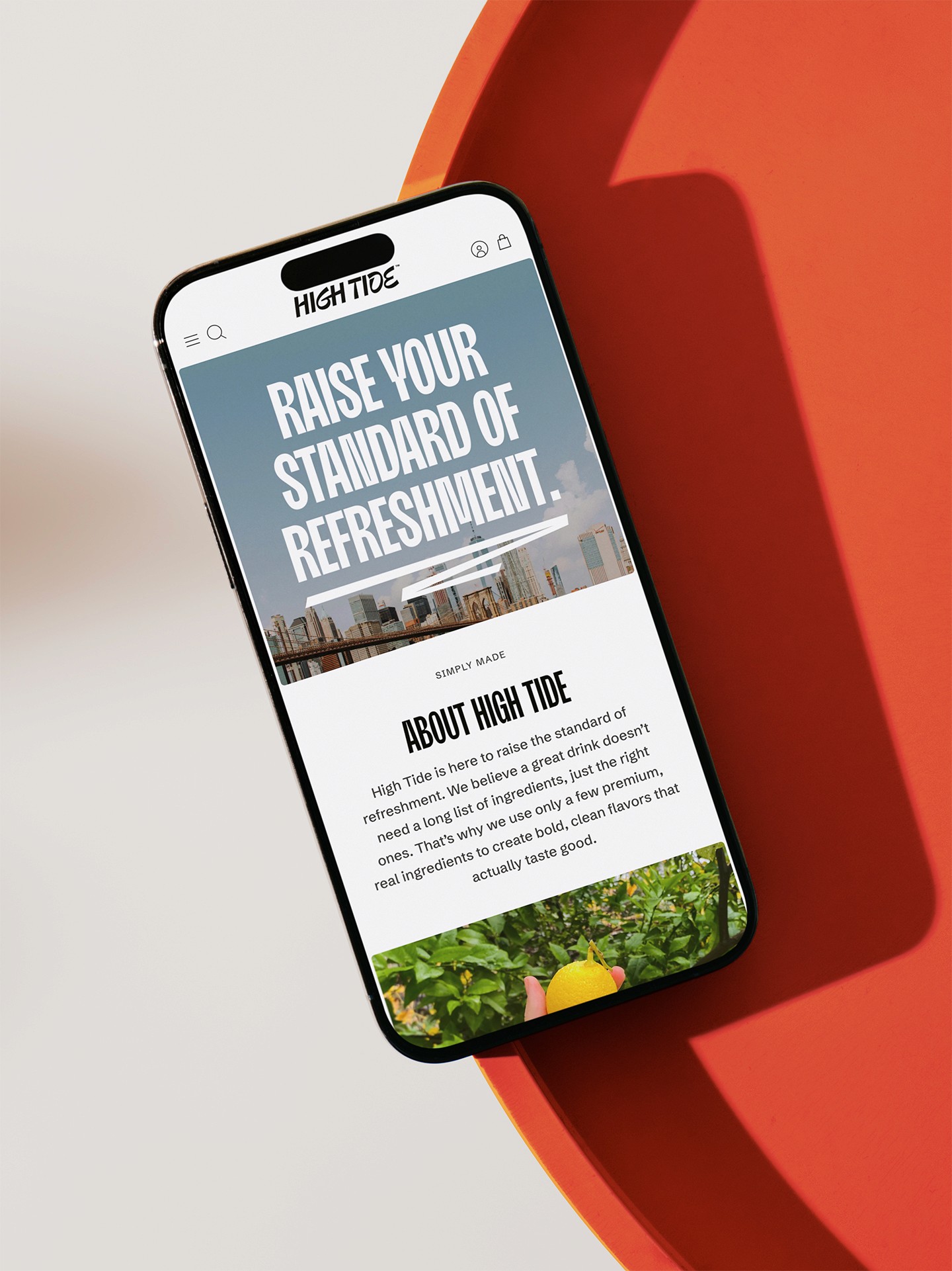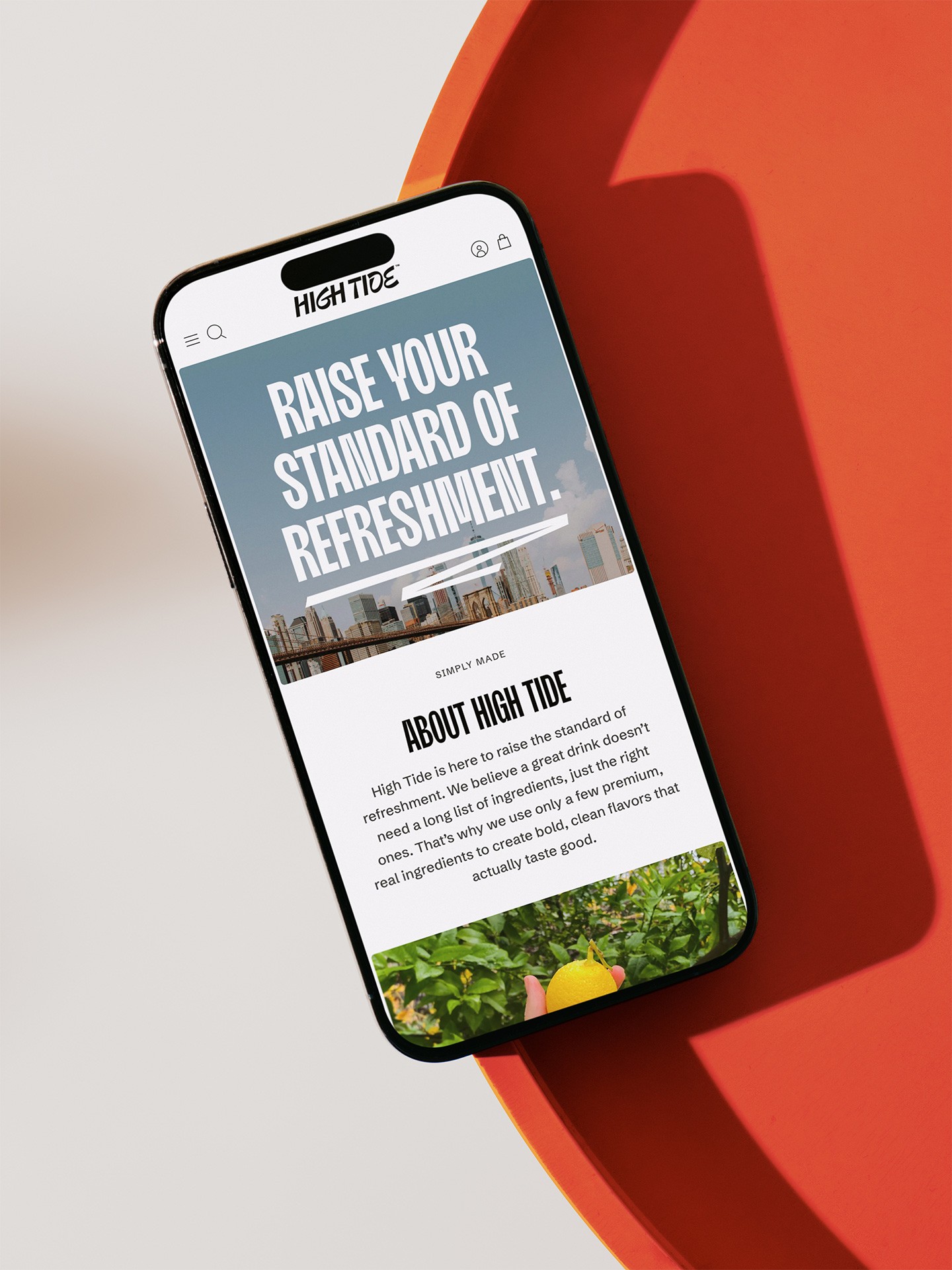 BRIER also created a Shopify website that integrates the brand's vibrant color palette and crisp typography. The site highlights the drinks while sharing High Tide's story, ensuring customers quickly grasp what the brand is all about.