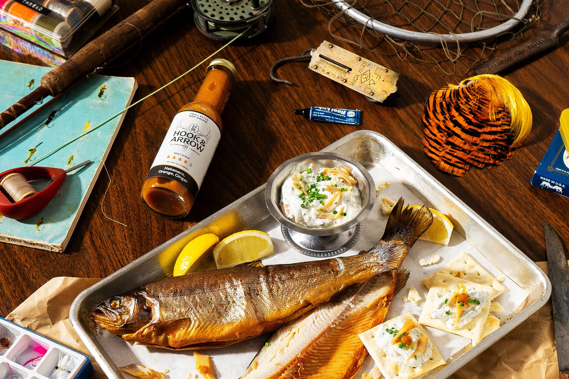 At the heart of the identity is a monogram that combines an arrowhead, a fishing hook, and the letters H and A, crafted from a stylized ampersand. This distinctive design laid the foundation for a brand debut in Season 27 of the Hot Ones lineup with Spicier Sauerkraut & Mustard.