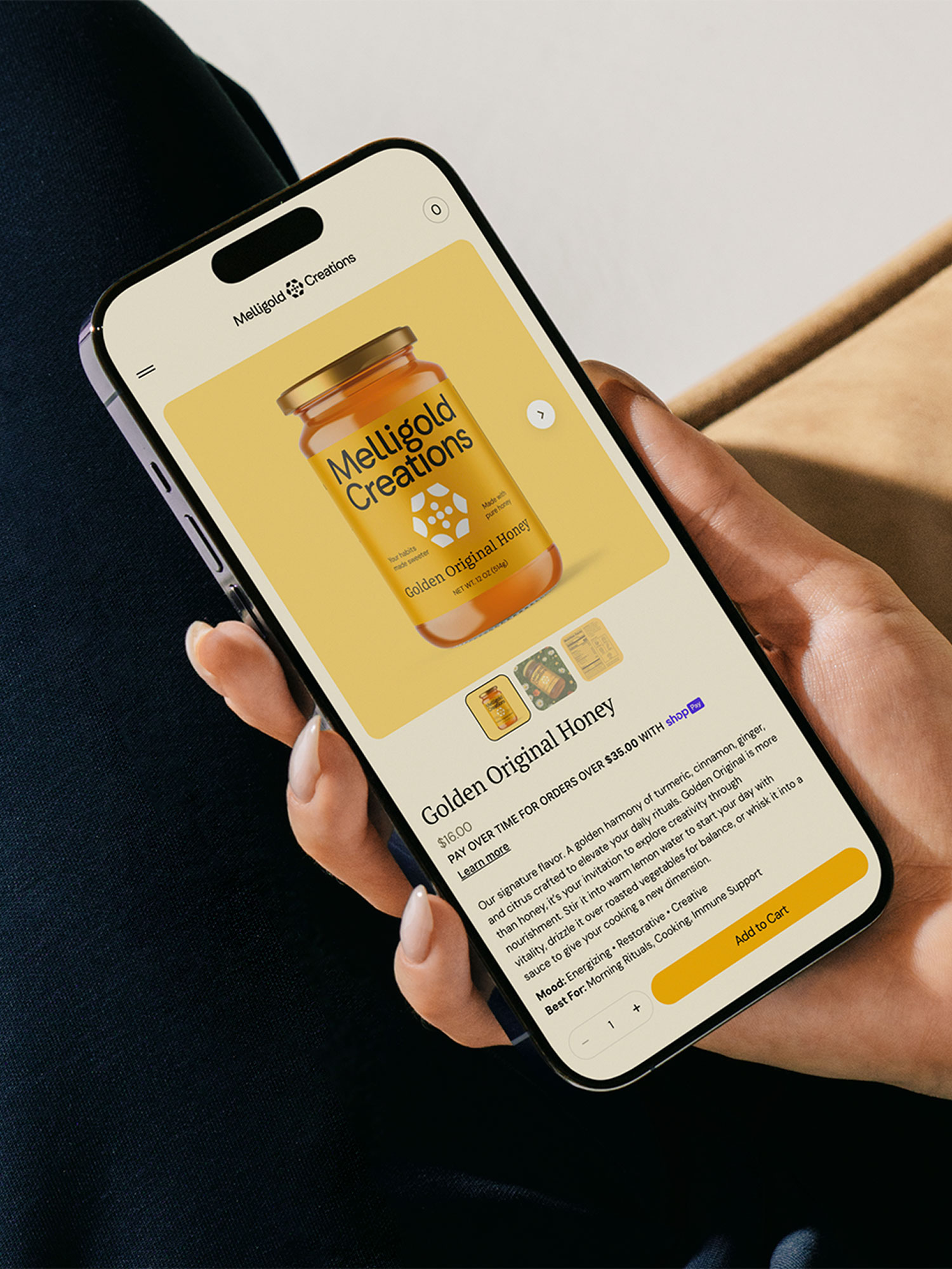 BRIER developed a visual identity that leverages a brand mark that represents the healthy benefits of honey. Every detail was meticulously designed to communicate Melligold Creations' belief: that the finest creations are made with patience and passion, and they are meant to be shared.